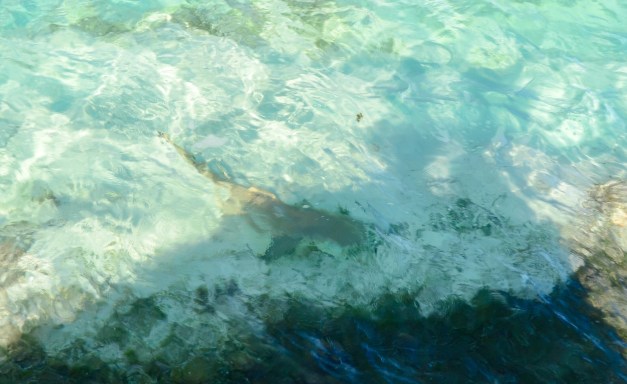 Holy smokes! We could clearly see sharkie this afternoon as he swam right by the rocks below us. This was either a different shark or we totally underestimated the size of the shark that we saw the other days. This shark was at least 3 to 3 1/2 feet long. He was big! Very very cool!
