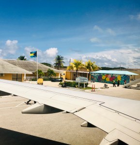 Immigration was quick and so was Customs. They asked if we had any alcohol, tobacco, or a drone. I smiled and held up my itty-bitty trio bottles of liquor 😂 and soon we were outside to meet up Charlie, our host at Bay View Villas.